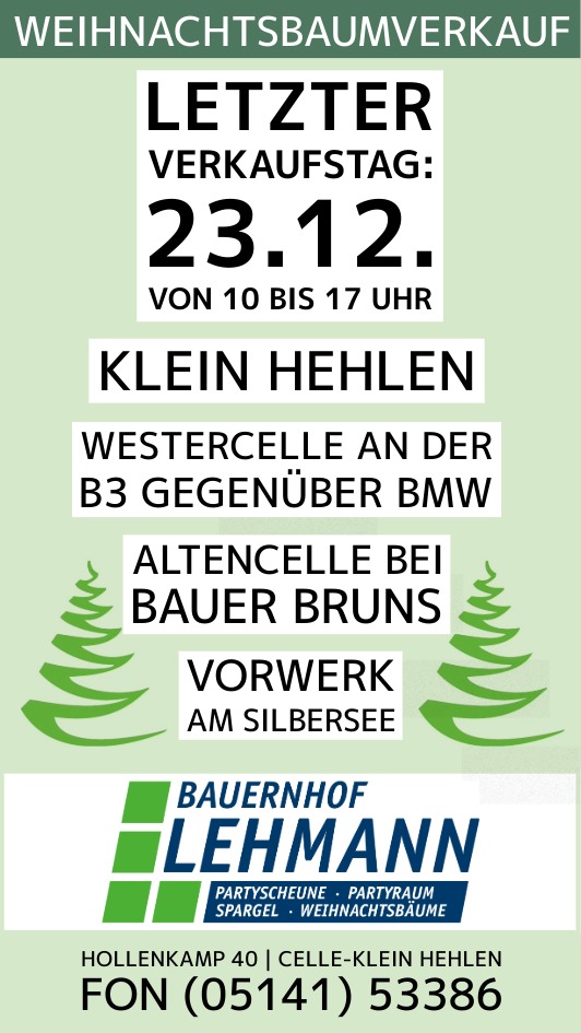 Gerne liefern wir alle Weihnachtsbäume auch in Celles Umgebung aus, zum Wunschtermin an deinen Wohnort oder in die Firma.